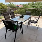 Λευτερης Villa cu 1 dormitoare are o bucătărie complet echipată, precum și o zonă de luat masa și o zonă de luat masa în aer liber pentru confortul oaspeților.